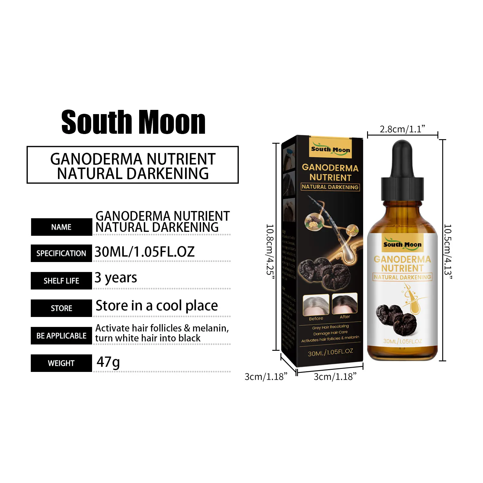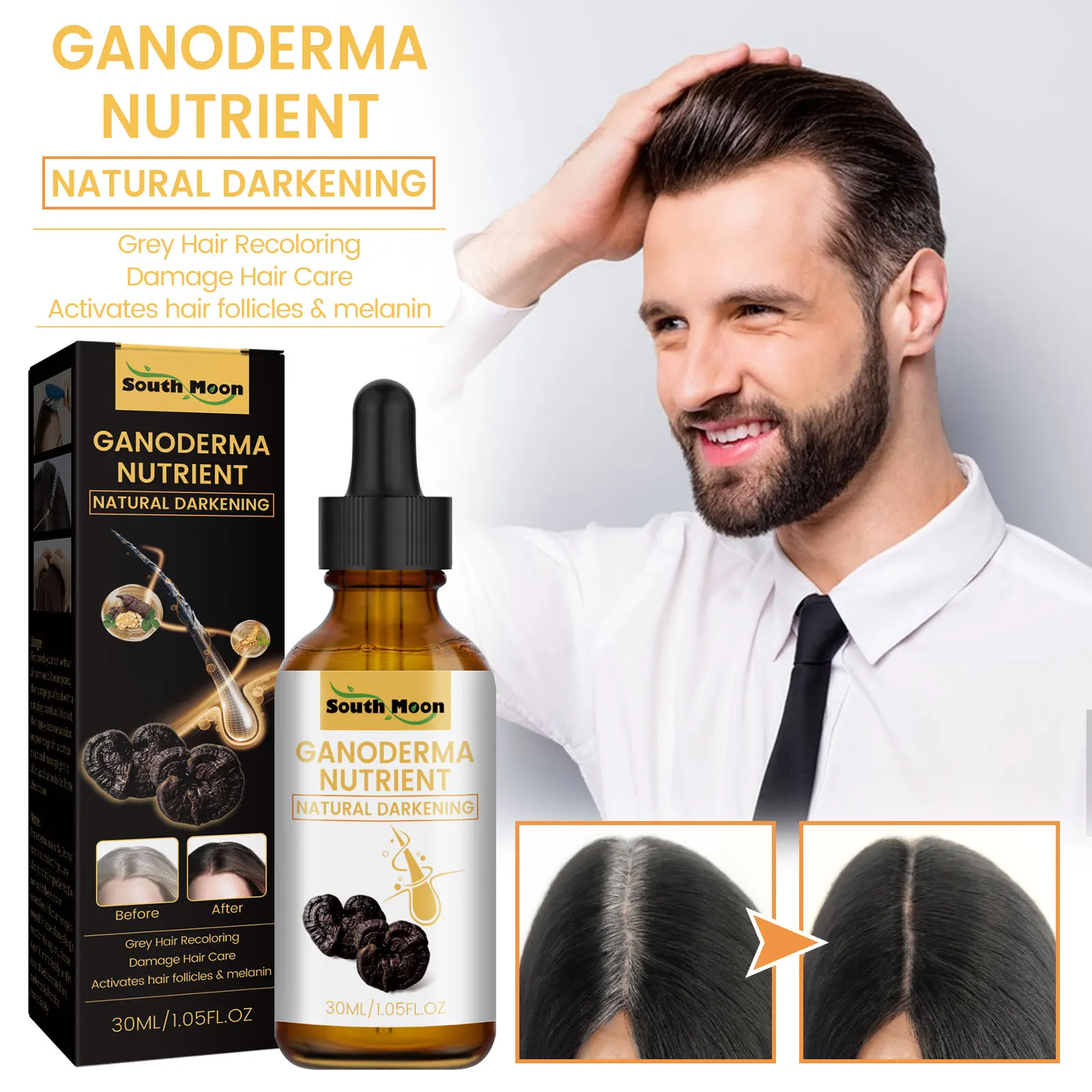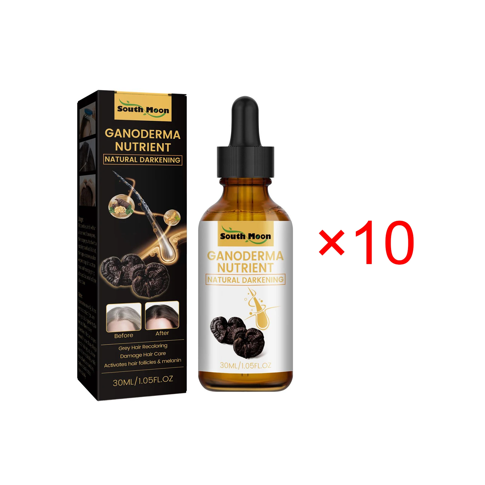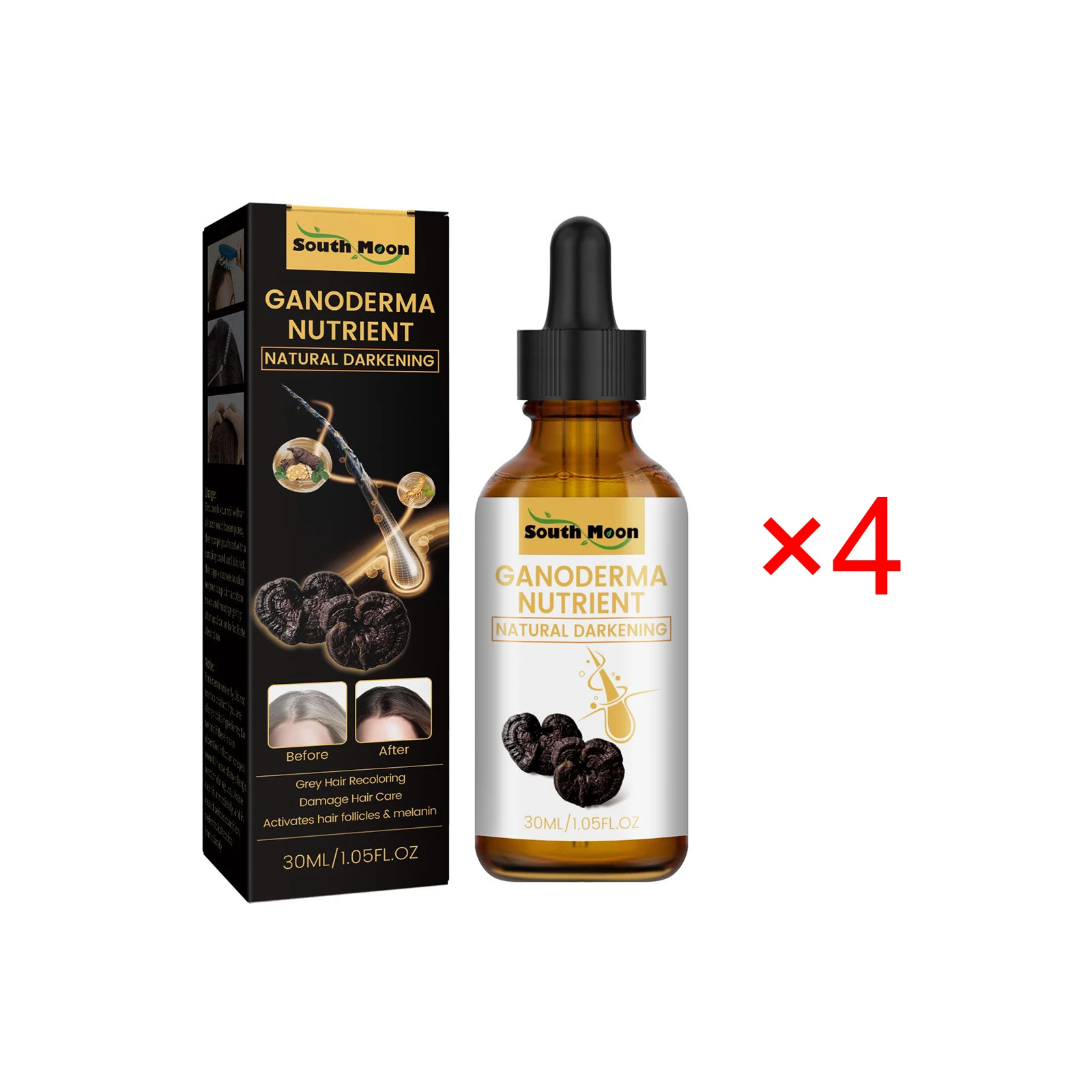 Ganoderma Nutrient Natural Hair Recoloring Damage Hair Care Activates Hair Follicles Melanin Hair Repair Massage Essence Liquid 30ml/* 4PCS / *10PCS